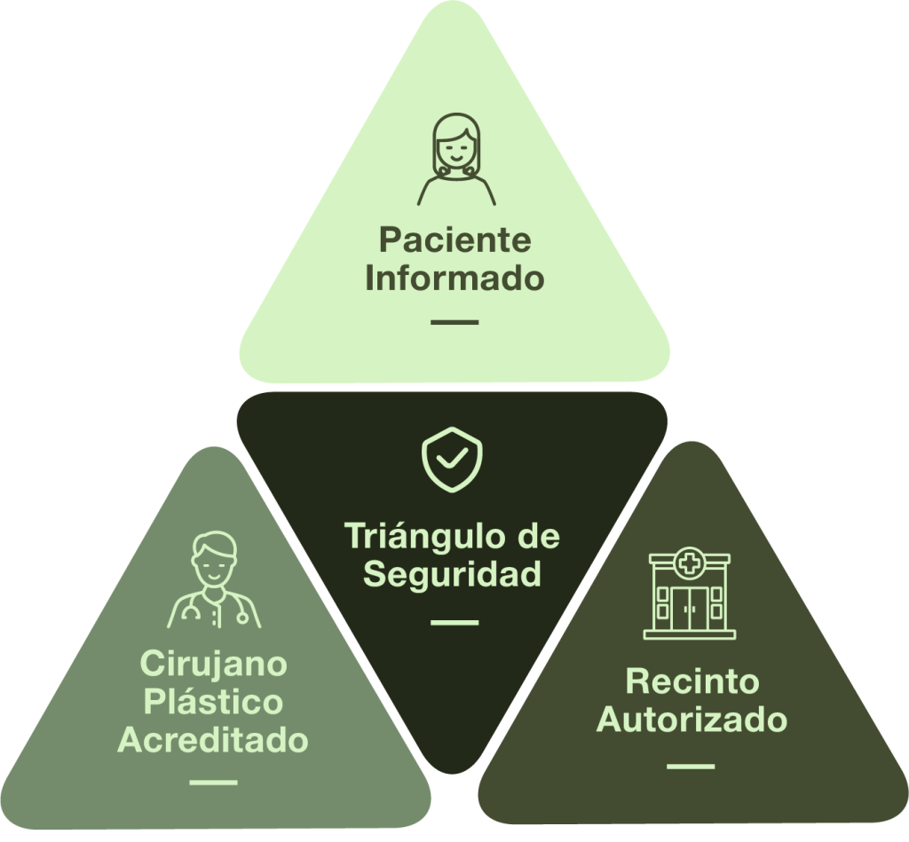La Sociedad Chilena de Cirugía Plástica (SCCP, www.sccp.cl) es una organización médica y científica sin fines de lucro dedicada a garantizar la calidad en la formación, certificación y atención de los cirujanos plásticos en Chile y recomienda utilizar el «Triángulo de Seguridad» para maximizar la seguridad al someterse a un procedimiento de cirugía plástica.